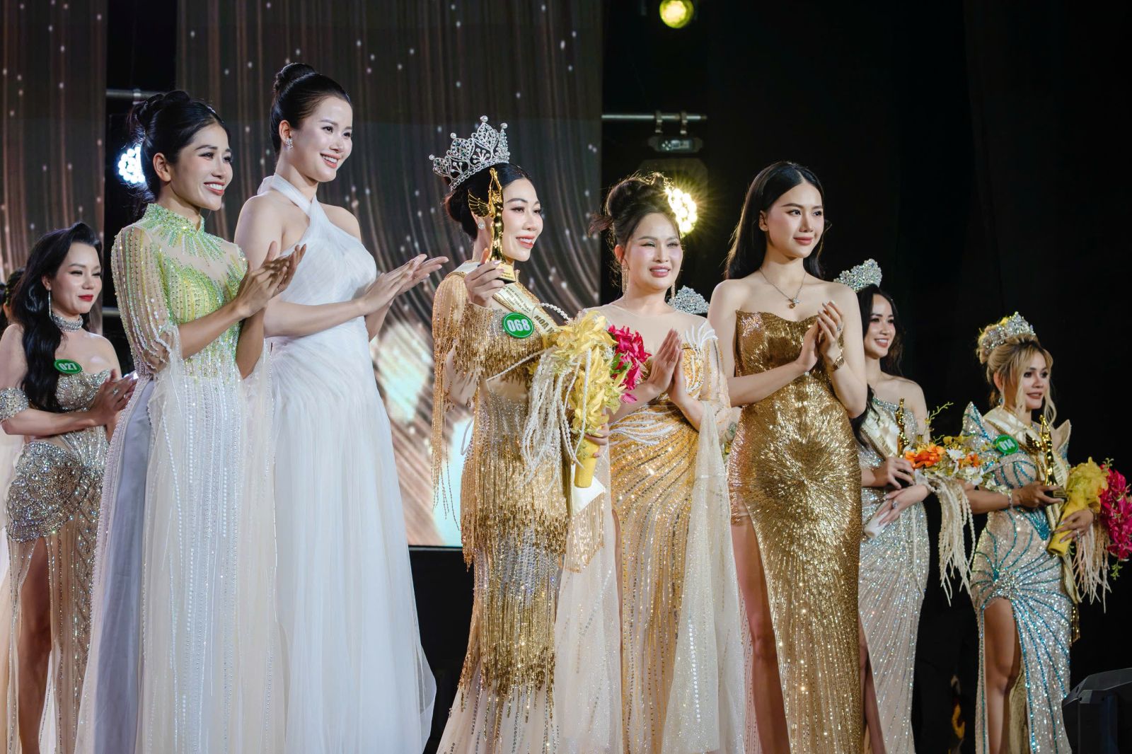 Phần thi trang phục dạ hội đã đẩy cảm xúc của khán giả lên cao trào khi các thí sinh khoác lên mình những thiết kế tinh xảo, lấp lánh đến từ NTK Mai Phương Trang – Chủ tịch cuộc thi. Những bước catwalk uyển chuyển, phong thái tự tin và khí chất doanh nhân thể hiện rõ qua từng bộ trang phục kiêu sa và sang trọng. Đây cũng là phần thi giúp ban giám khảo đánh giá thần thái và sự thể hiện tổng thể của từng thí sinh.