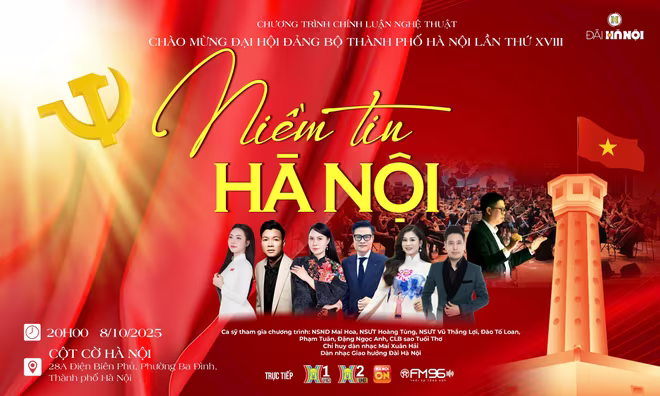 Chào mừng Đại hội Đảng bộ thành phố Hà Nội lần thứ XVIII nhiệm kỳ 2025 - 2030, chương trình chính luận nghệ thuật “Niềm tin Hà Nội” do Đài Hà Nội thực hiện đã diễn ra vào tối qua 8-10-2025 tại Cột cờ Hà Nội.