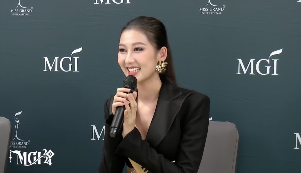 “Thị trường giải trí tại Thái Lan đang rất phát triển. Vì thế tôi nghĩ tôi rất phù hợp với Miss Grand International năm nay." - Quế Anh tự tin bày tỏ, đồng thời cô còn khiến ban giám khảo hào hứng khi tiết lộ dự định sẽ ra mắt với tư cách ca sĩ chuyên nghiệp sau cuộc thi.