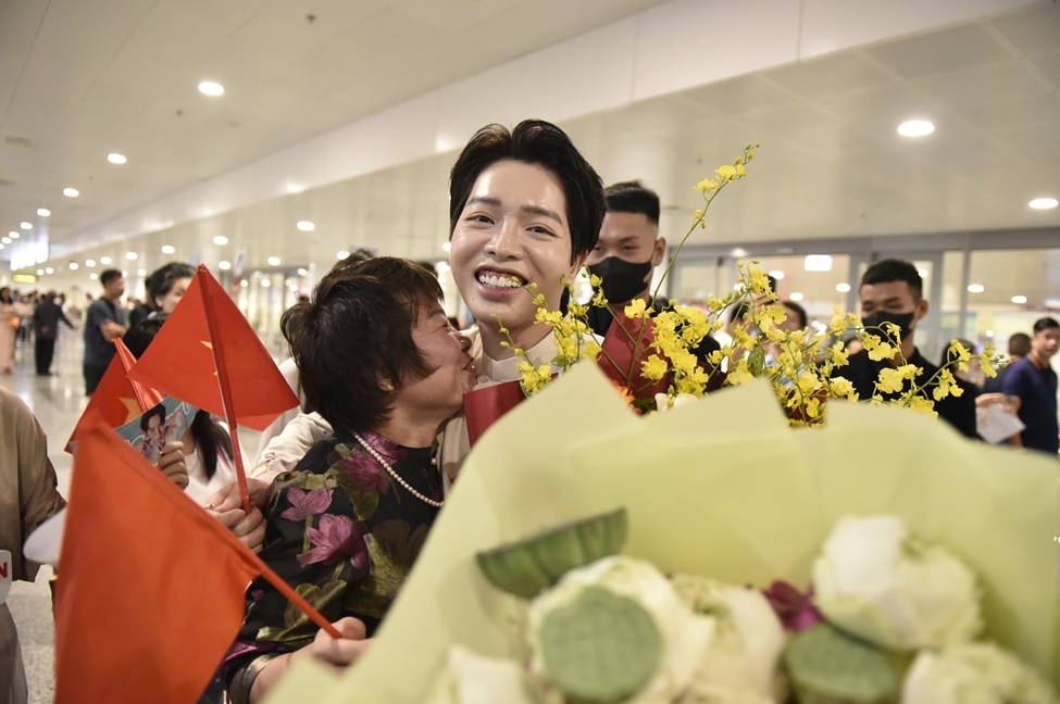 Tiếng hò reo, tiếng gọi tên Đức Phúc vang khắp sảnh quốc tế, tạo nên bầu không khí ấm áp, như một lời chào mừng nồng nhiệt dành cho người nghệ sĩ trẻ sau hành trình đầy vinh quang. Các cơ quan báo chí cũng nhanh chóng có mặt, ghi lại khoảnh khắc nam ca sĩ bước ra trong vòng tay của người hâm mộ và gia đình.