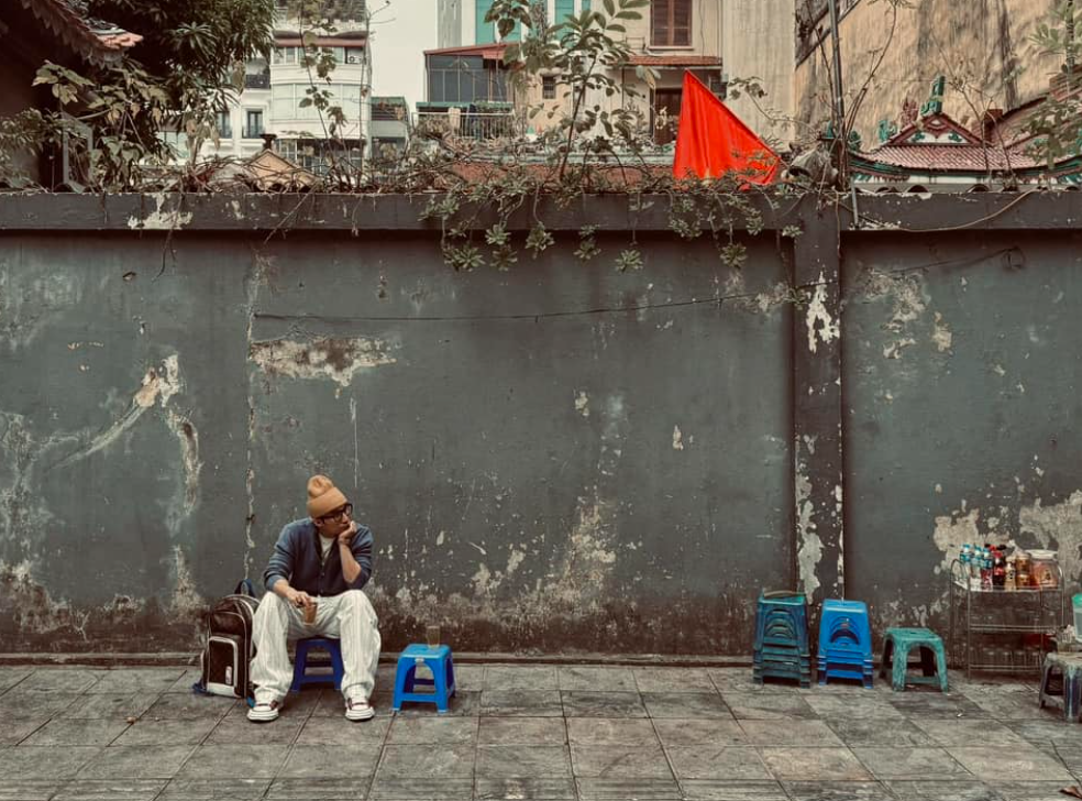 Bức ảnh Sơn Tùng M-TP ngồi ống trà đá vỉa hè gây xôn xao. Ảnh: CĐM