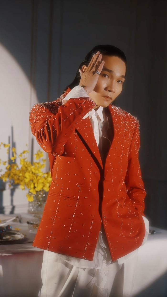 Khoác lên mình chiếc áo vest tone đỏ của mùa lễ hội cuối năm, Wowy khoe trọn vẻ lãng tử, lịch lãm với thần thái đĩnh đạc, đầy nổi bật. Dù hé lộ nhỏ giọt hình ảnh trên trang cá nhân với mái tóc dài khác lạ nhưng anh nhận được vô số lời khen từ khán giả về lần tái xuất thú vị này.