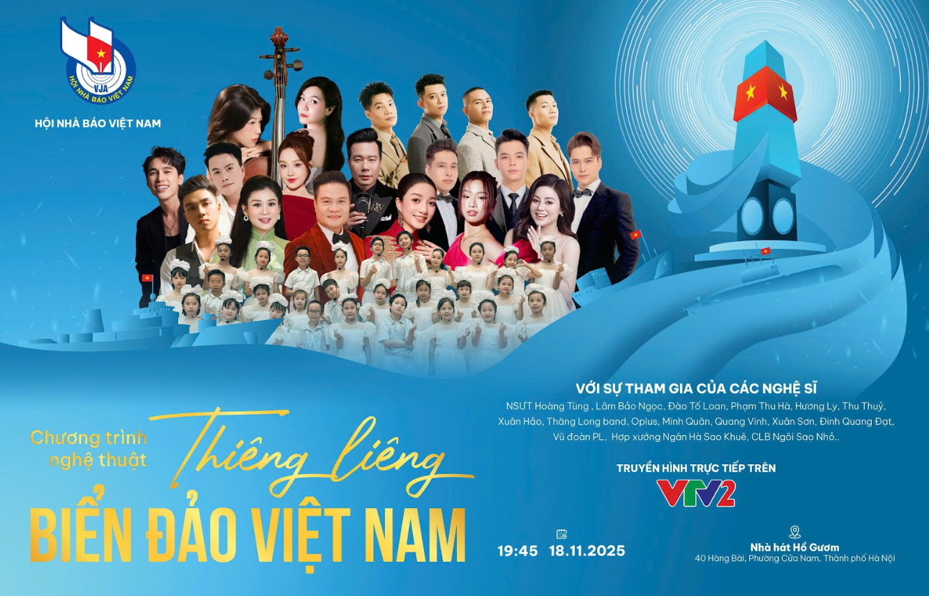 Nhằm phát huy sức mạnh đại đoàn kết dân tộc và tăng cường tuyên truyền về bảo vệ chủ quyền biển, đảo Tổ quốc, Hội Nhà báo Việt Nam sẽ phối hợp với một số đơn vị liên quan tổ chức Chương trình nghệ thuật “Thiêng liêng biển đảo Việt Nam”. Chương trình sẽ diễn ra vào ngày 18 tháng 11 năm 2025 tại Nhà hát Hồ Gươm. Chương trình cảm ơn sự tham gia đồng hành của Tập đoàn Công nghiệp – Năng lượng quốc gia Việt Nam (Petrovietnam), Ngân hàng TMCP Công Thương Việt Nam (VietinBank), Ngân hàng Nông nghiệp và Phát triển nông thôn Việt Nam (AgriBank), Tổng Công ty Dầu Việt Nam – CTCP (PVOIL).