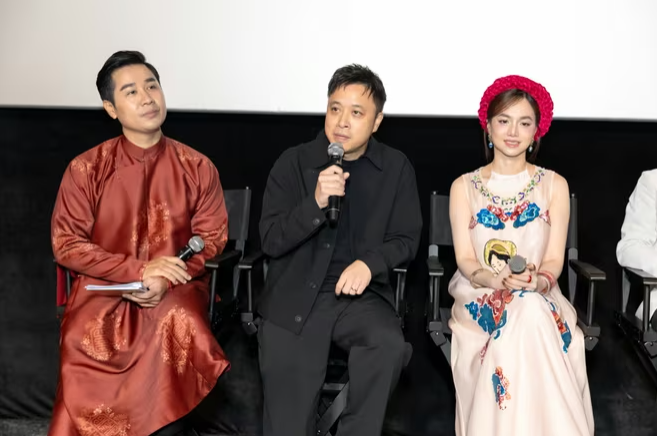 Nhà văn Hồng Thái và vợ chồng đạo diễn Victor Vũ - Đinh Ngọc Diệp |