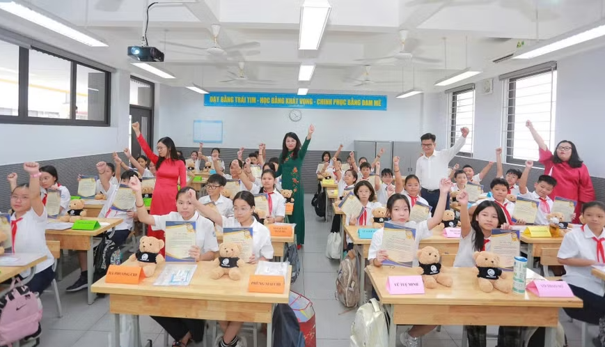 Thầy trò Trường THCS Trần Duy Hưng (Hà Nội). Ảnh: NTCC |