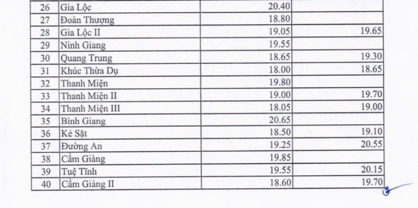 Theo kết quả đã công bố, Trường THPT Hồng Quang (TP Hải Dương) tiếp tục giữ vị trí dẫn đầu về điểm chuẩn nguyện vọng 1 với mức 24,3 điểm. Trường THPT Nguyễn Văn Cừ có điểm chuẩn lần lượt là 21,04 điểm cho nguyện vọng 1 và 22,35 điểm cho nguyện vọng 2.