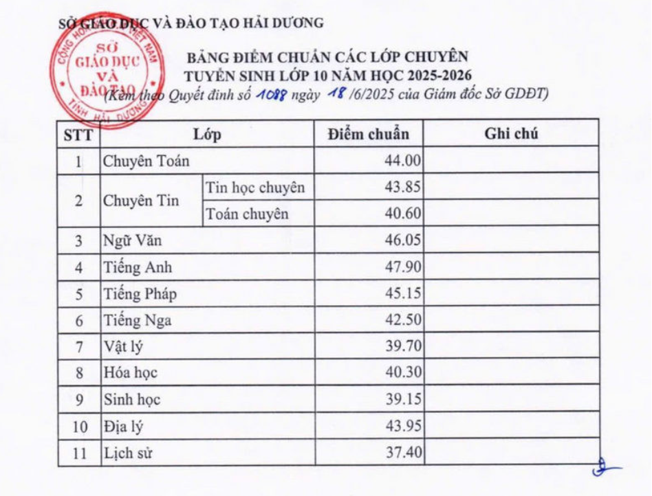 Hiện nay, Sở GD&ĐT Hải Dương đang tiến hành tổng hợp danh sách các thí sinh đạt điểm 10, thủ khoa toàn tỉnh và thủ khoa theo từng lớp chuyên.