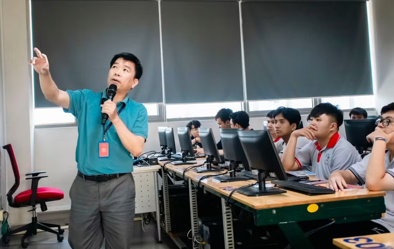 Giảng viên khối ngành công nghệ kỹ thuật Trường Đại học Văn Lang trong hoạt động trải nghiệm thực tế cho học sinh. Ảnh: T.My |