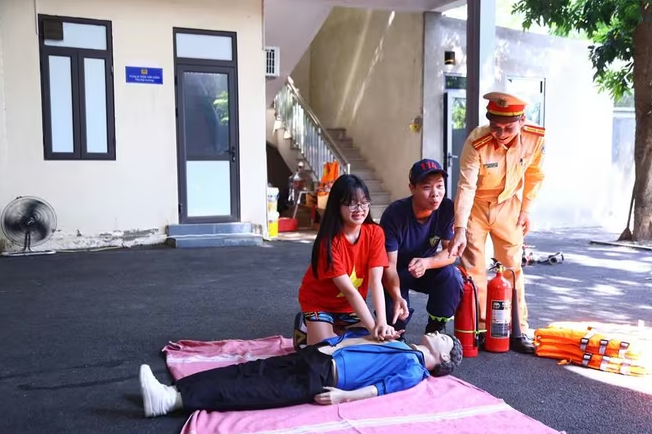 Trung tá Tạ Tiến Đạt, Đội trưởng Đội chữa cháy và cứu nạn, cứu hộ trên sông - Phòng Cảnh sát Phòng cháy, chữa cháy và cứu nạn, cứu hộ - Công an thành phố Hà Nội cho biết: “Việc trang bị kỹ năng, kiến thức an toàn cháy, nổ và thoát nạn hạn chế thương vong tại học đường đã được lãnh đạo Phòng chỉ đạo triển khai quyết liệt trong thời gian qua. Cùng với đó, đơn vị được giao nhiệm vụ phối hợp triển khai các biện pháp cứu nạn đuối nước nhằm trang bị hành trang, kỹ năng quan trọng cho học sinh để an toàn cho chính bản thân khi không may gặp sự cố. Đây là biện pháp tuyên truyền, lan tỏa công tác phòng cháy, chữa cháy đến quần chúng nhân dân, nhà trường”.
