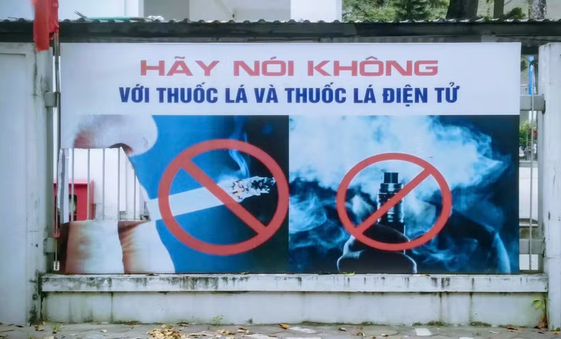 | Biển báo về không hút thuốc lá được thiết kế ở các trường học. |