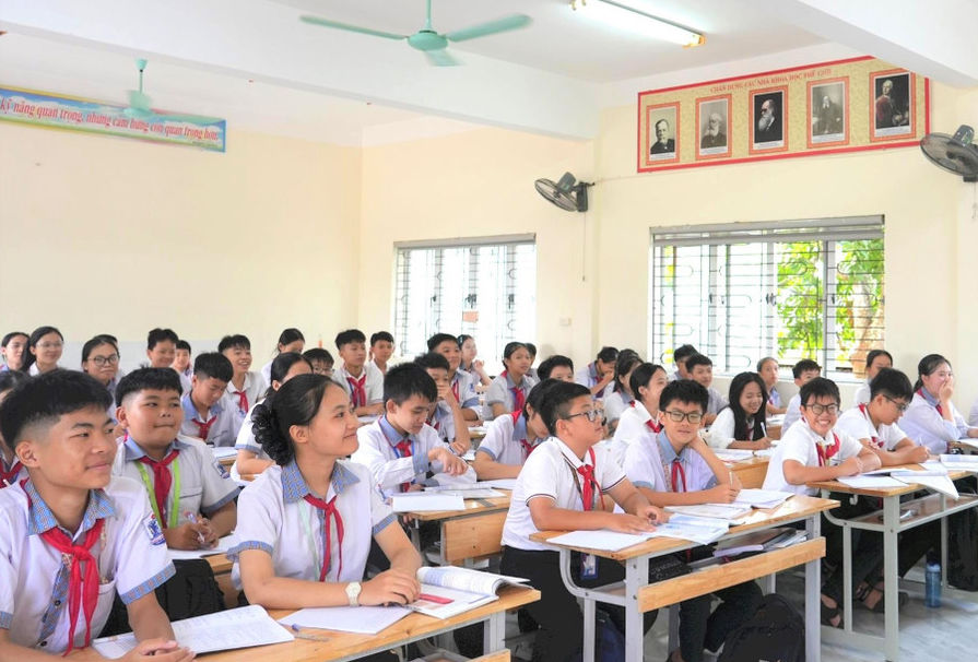 Trường THCS Nguyễn Trãi vừa làm công tác phổ cập, giáo dục đại trà cho học sinh trên địa bàn, vừa là trường trọng điểm của tỉnh Nghệ An. Ảnh: Hồ Lài