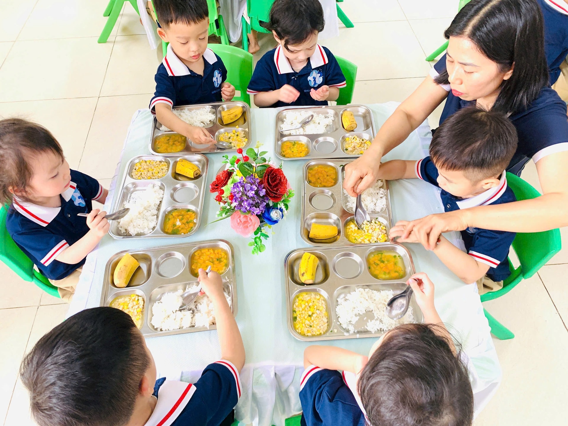 Các bữa ăn học đường luôn được quan tâm giúp trẻ ăn ngon miệng.