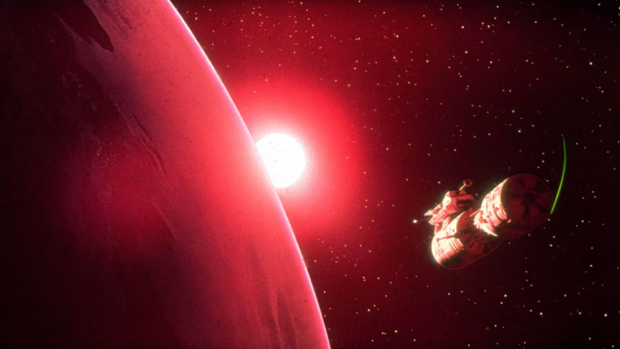 Cảnh tàu vũ trụ tiến về phía một ngôi sao đỏ trên hành trình tới Sao Mộc trong phim “2001: A Space Odyssey”. Nguồn: Cinematic/Alamy.
