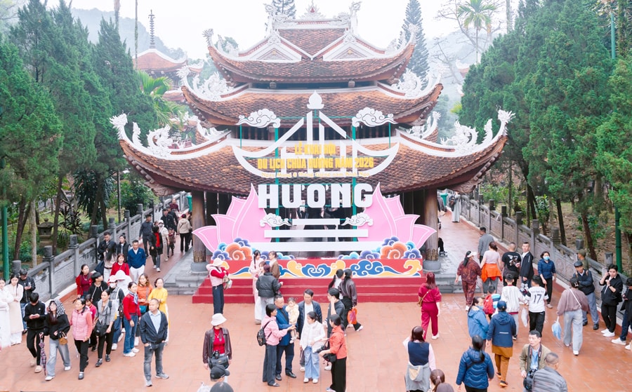 Du khách tham quan Khu di tích và danh thắng Hương Sơn (chùa Hương). Ảnh: Đỗ Tâm