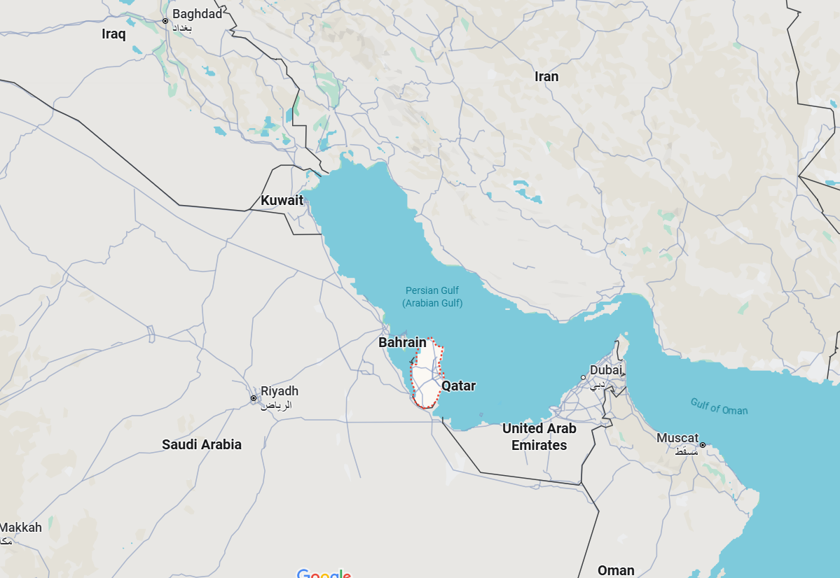 Qatar chỉ là một chấm nhỏ ngay cả trong bản đồ khu vực.
