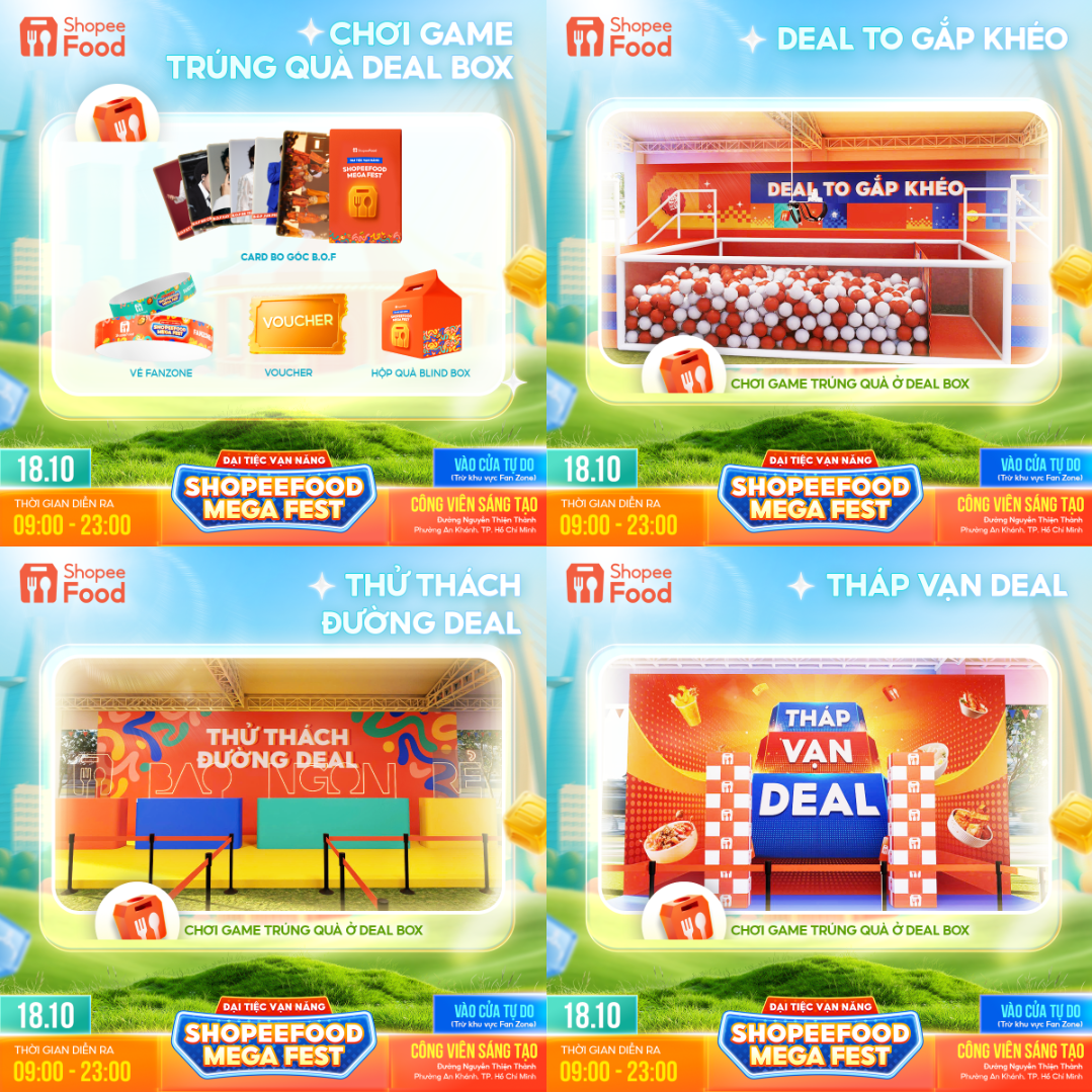 Ngoài ra, suốt thời gian diễn ra sự kiện, bạn còn có thể tham gia 7 thử thách siêu thú vị. Từ việc chinh phục Tháp Vạn Deal để săn deal đỉnh cao, vượt Đường Deal Thử Thách đòi hỏi độ khéo và bền bỉ, cho đến thử vận may trong Deal To Gắp Khéo để gắp quà cực chất… khiến bạn chỉ muốn chơi tới bến để không bỏ lỡ niềm vui nào. Đặc biệt, mỗi thử thách còn là cơ hội để bạn gắn kết cùng hội bạn thân và mang về voucher cực hời cùng quà tặng xịn xò từ ShopeeFood.