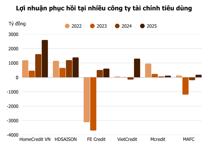 Trên nền tảng đà phục hồi từ 2024, nhiều công ty tài chính tiêu dùng báo lợi nhuận năm 2025 tăng mạnh, thậm chí lập đỉnh.