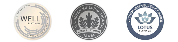 Công trình dự kiến xuất sắc giành được chứng nhận WELL Platinum của IWBI, chuẩn quốc tế duy nhất hiện nay tập trung vào sức khỏe và sự an lành của con người, nhằm đảm bảo một môi trường làm việc lý tưởng cho nhân viên và nâng cao giá trị thương hiệu.