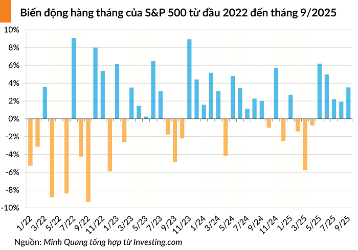 Theo CNBC, trong phiên giao dịch ngày 30/9, chỉ số S&P 500 đóng cửa tăng 0,41% lên 6.688 điểm. Chỉ số thiên về công nghệ Nasdaq Composite nhích 0,31%, chốt phiên với 22.660 điểm. Chỉ số trung bình công nghiệp Dow Jones tăng 82 điểm, tương đương 0,18%, lên 46.398 điểm và lập kỷ lục mới.