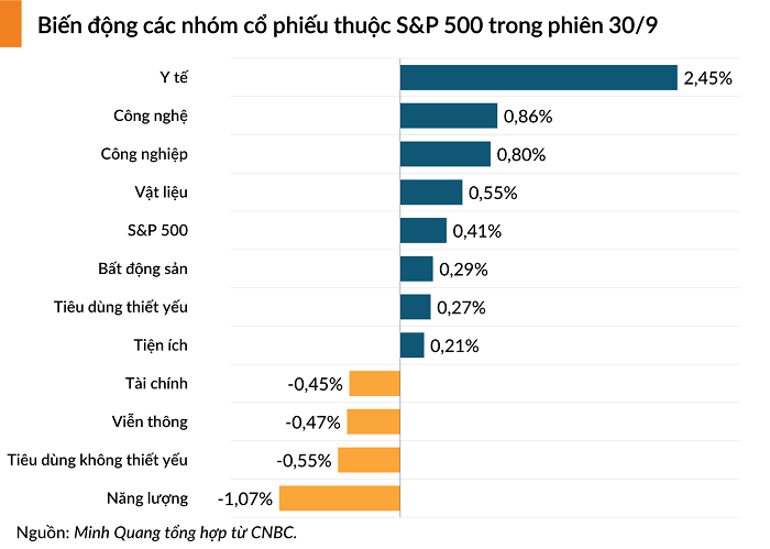 Những diễn biên hôm 30/9 đã góp phần củng cố đà tăng của thị trường trong tháng 9. Chỉ số S&P 500 đã tăng 3,5% trong tháng qua, còn Dow Jones tăng gần 2%. Nasdaq Composite có thành tích vượt trội nhất với mức tăng 5,6%.