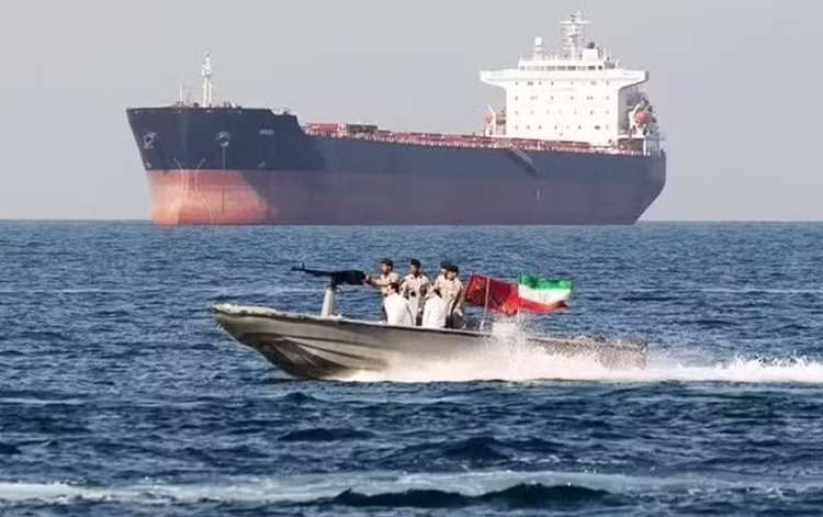 | Tàu tuần tra Iran giám sát tàu vận tải di chuyển qua eo biển Hormuz. |