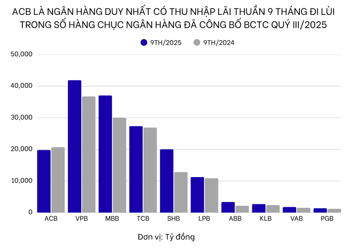 Nhờ sự tăng trưởng của nguồn thu ngoài lãi cũng như việc cắt giảm chi phí dự phòng, ACB báo lãi trước thuế 9 tháng đầu năm 2025 đạt 16.072 tỷ đồng, tăng 5% svck.