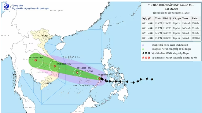 Bão số 13- bão Kalmaegi được dự báo đổ bộ đất liền vào đêm mai 6-11 |