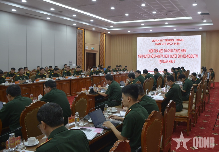 Báo cáo của Quân khu 7 chỉ rõ: Giai đoạn 2024 - 2025, Quân khu đã tổ chức nghiên cứu, quán triệt, tổ chức thực hiện kịp thời, hiệu quả Nghị quyết số 57-NQ/TW ngày 22-12-2024 của Bộ Chính trị, Nghị quyết số 3488-NQ/QUTW ngày 29-1-2025 của Quân ủy Trung ương và các văn bản chỉ đạo, hướng dẫn thực hiện của Bộ Quốc phòng, cơ quan chức năng Bộ Quốc phòng. Qua đó, nhận thức của cấp ủy, chỉ huy, cán bộ, chiến sĩ các cơ quan, đơn vị về tầm quan trọng của khoa học, công nghệ, đổi mới sáng tạo và chuyển đổi số được nâng lên rõ rệt; chất lượng, hiệu quả thực hiện nhiệm vụ được nâng cao.