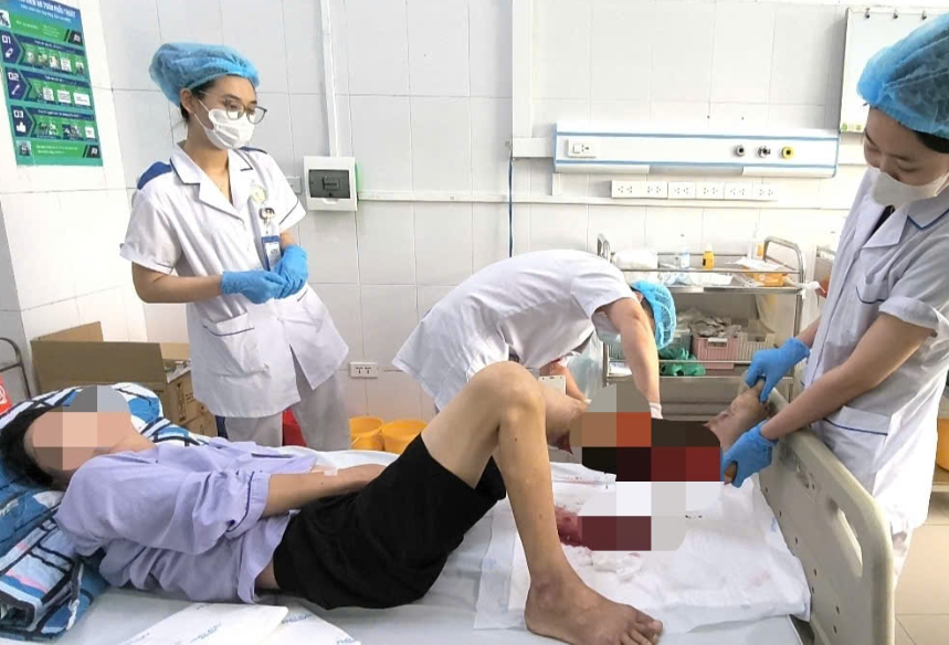 Trường hợp điển hình là bệnh nhân L.X.T (38 tuổi, Tuyên Quang) có tiền sử gút mạn tính và tăng huyết áp. Sau khi xuất hiện sưng đỏ ở cẳng chân, người bệnh tự ý gãi gây trầy xước rồi bôi dầu gió, chườm lạnh.