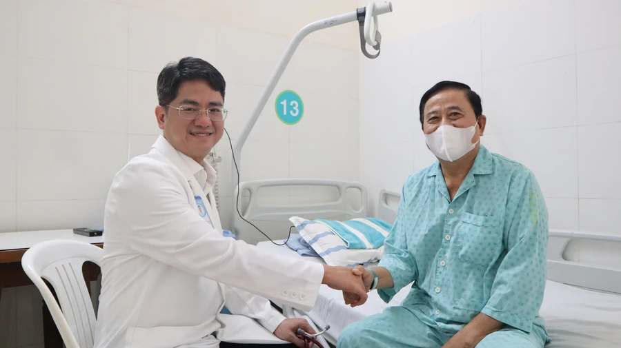 Bệnh nhân G. phục hồi tốt sau phẫu thuật, vận động linh hoạt, ăn uống ngon miệng, xuất viện sớm. Ảnh: BVCC |