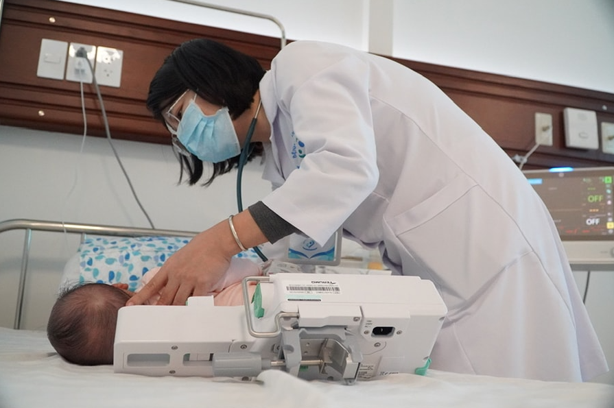 Chăm sóc bệnh nhi mắc cúm tại Bệnh viện Nhi Hà Nội.