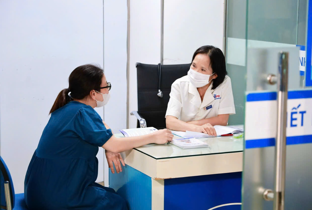 Bác sĩ tư vấn cho người dân Hà Nội trước khi tiêm phòng vaccine.