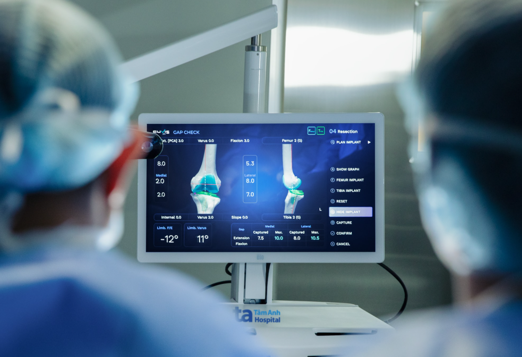 Phần mềm chuyên dụng của Robot CUVIS-Joint giúp bác sĩ kiểm tra và cân bằng tối ưu cấu trúc khớp, mô mềm và trục chi trong quá trình mổ. Ảnh: Bệnh viện Đa khoa Tâm Anh