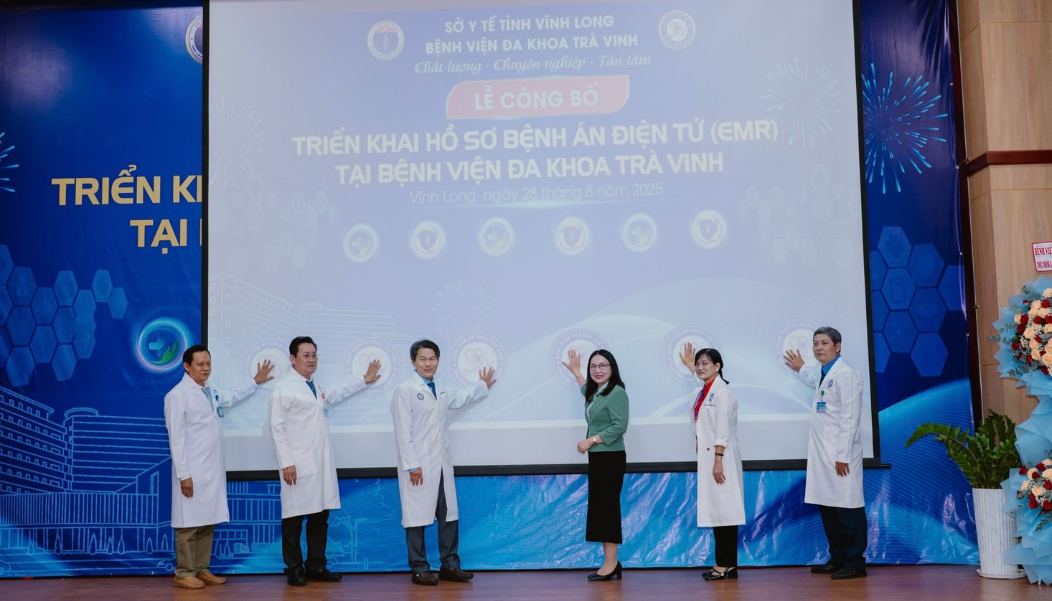 Công bố triển khai hồ sơ bệnh án điện tử tại Bệnh viện Đa khoa Trà Vinh. Ảnh: Trung tâm Kiểm soát bệnh tật Vĩnh Long
