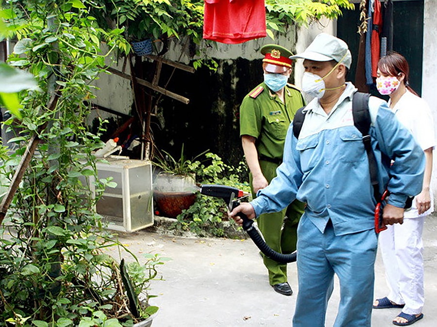 Phun hóa chất diệt muỗi tại các ngõ nhỏ - hình ảnh đặc trưng cho sự vất vả của y tế cơ sở.