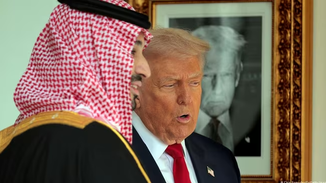 Tổng thống Mỹ Donald Trump trò chuyện với Thái tử Saudi Arabia Mohammed bin Salman tháng 11-2025 |