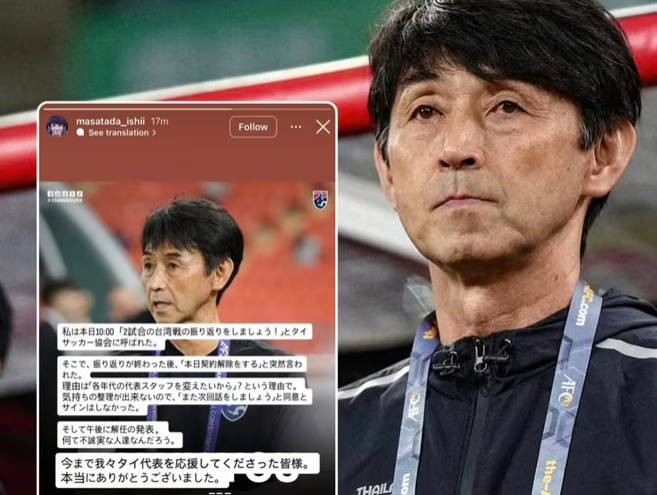 HLV Masatada Ishii kể được Liên đoàn bóng đá Thái Lan (FAT) mời họp mổ xẻ chuyên môn, nhưng rời cuộc họp nhận được thông báo sa thải.