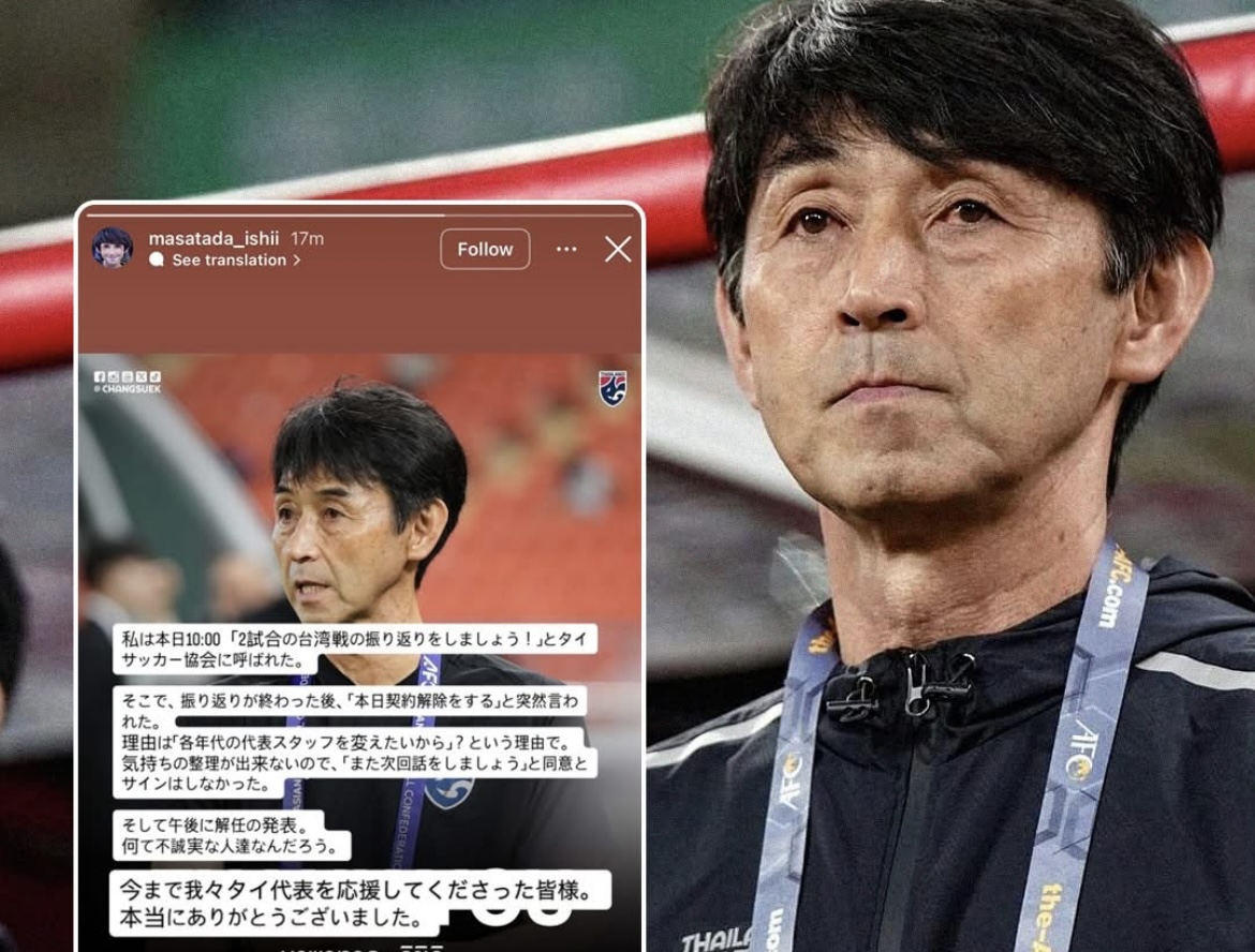 Chiều 21-10, FAT thông báo sa thải HLV trưởng đội tuyển quốc gia - Masatada Ishii và đưa ra hai lý do: Một là, lối chơi của tuyển Thái Lan không còn phù hợp, hai là, kết quả thi đấu không tốt.