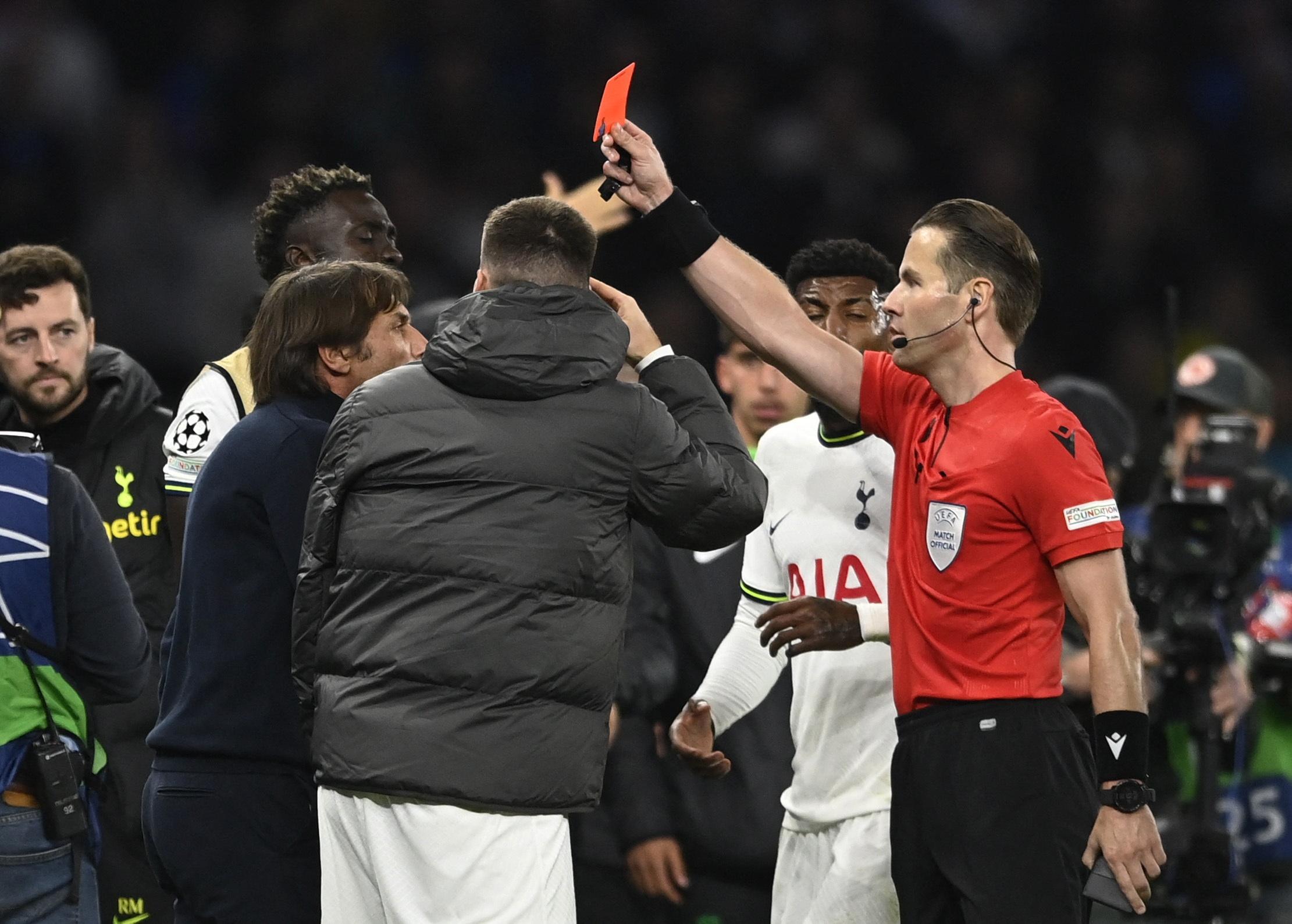 HLV Conte nhận thẻ đỏ ở phút 90+9