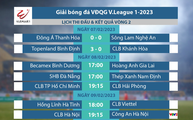 Báo Công Thương gửi tới Quý độc giả lịch thi đấu bóng đá vòng 2 V.League 2023 được cập nhật mới nhất.