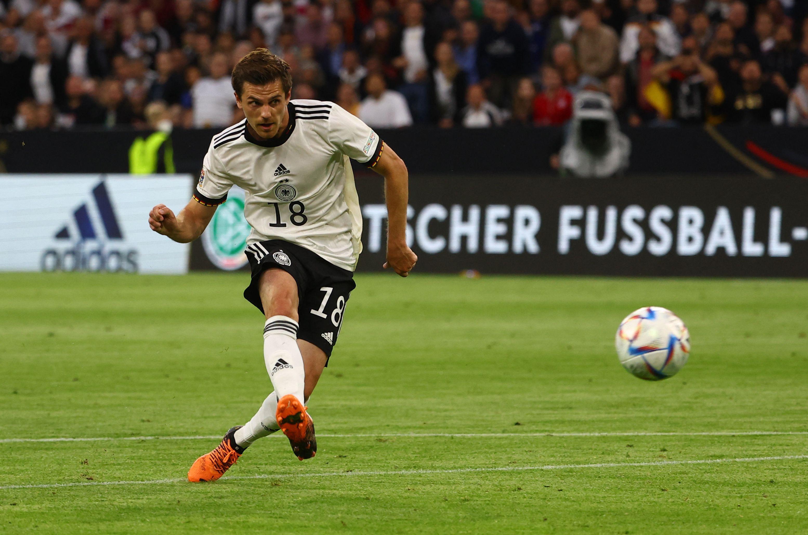 Trên sân nhà, tuyển Đức chơi chậm rãi và chọn thời điểm thích hợp để thực hiện những tình huống chuyển trạng thái. Phút 50, Kai Havertz rê dắt khéo léo để kéo giãn hàng thủ tuyển Anh. Joshua Kimmich nhận bóng rồi chọc khe để Jonas Hofmann xoay người dứt điểm, không cho Jordan Pickford cơ hội cản phá.