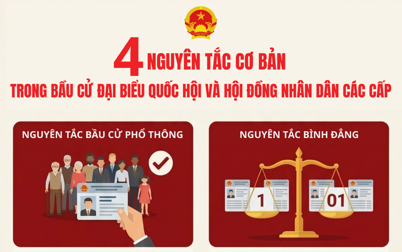 Phổ thông, bình đẳng, trực tiếp và bỏ phiếu kín là bốn nguyên tắc cơ bản trong bầu cử đại biểu Quốc hội và đại biểu Hội đồng nhân dân các cấp. Việc tuân thủ các nguyên tắc này góp phần bảo đảm quyền bầu cử của công dân được thực hiện dân chủ, công bằng và đúng quy định của pháp luật.