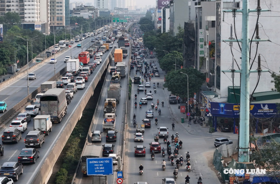 Dòng phương tiện rời rời Thủ đô trong ngày làm việc cuối cùng trước khi cả nước bước vào kỳ nghỉ Tết Dương lịch 2024 kéo dài 4 ngày. Ảnh: Quang Hùng.