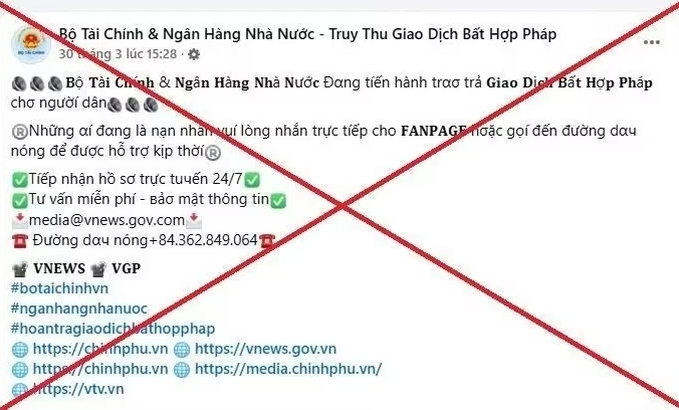 Công an thành phố Hà Nội vừa phát đi cảnh báo về một thủ đoạn lừa đảo mới trên không gian mạng, trong đó các đối tượng mạo danh cơ quan nhà nước để chiếm đoạt tài sản. Đáng chú ý, nhiều trang Facebook giả mạo Bộ Tài chính đã được lập ra, đăng tải nội dung “hỗ trợ người dân lấy lại tiền bị lừa” nhằm tạo dựng lòng tin và dẫn dụ nạn nhân vào bẫy.