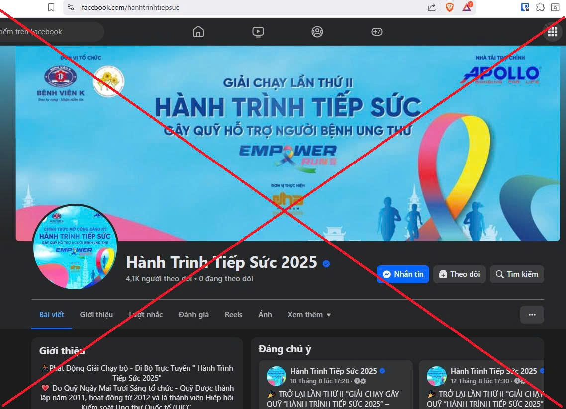 Để tạo sự tin tưởng, các đối tượng tạo lập các tài khoản mạng xã hội, đặt logo “mạo danh” hay sao chép toàn bộ nội dung, hình ảnh các bệnh viện, tổ chức có uy tín (sử dụng cả tài khoản tích xanh), chạy quảng cáo về các giải chạy từ thiện, “hành trình tiếp sức” gây quỹ hỗ trợ người bệnh ung thư để lừa người dân chuyển tiền đăng ký qua các đường dẫn giả, rồi chiếm đoạt.