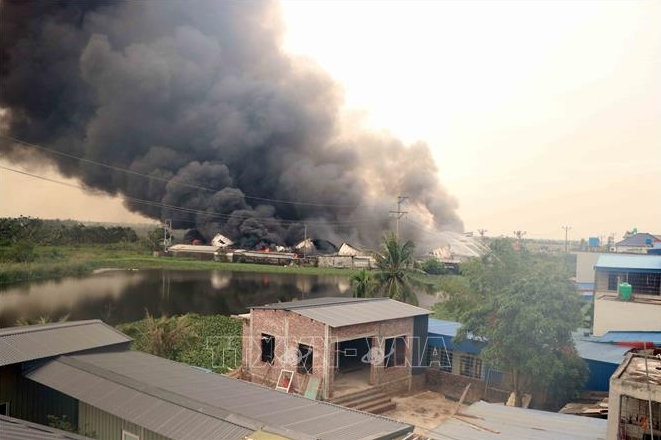 Cháy lớn tại nhà máy giày da ở Hải Phòng