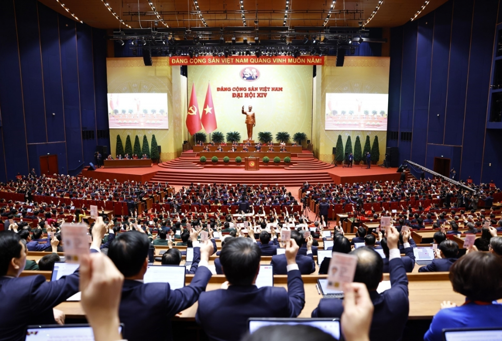 | Các đại biểu biểu quyết thông qua Nghị quyết Đại hội đại biểu toàn quốc lần thứ XIV của Đảng. |