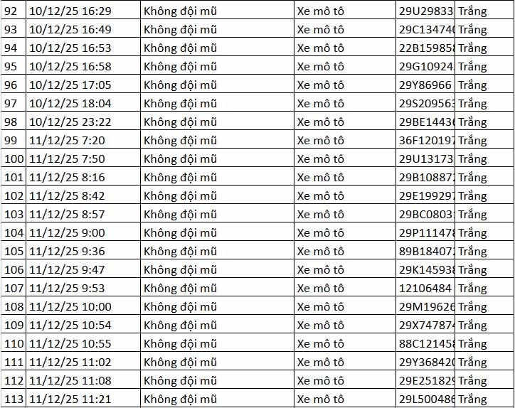 Danh sách xe máy bị phạt qua camera AI tại Hà Nội từ ngày 10 đến 11-12