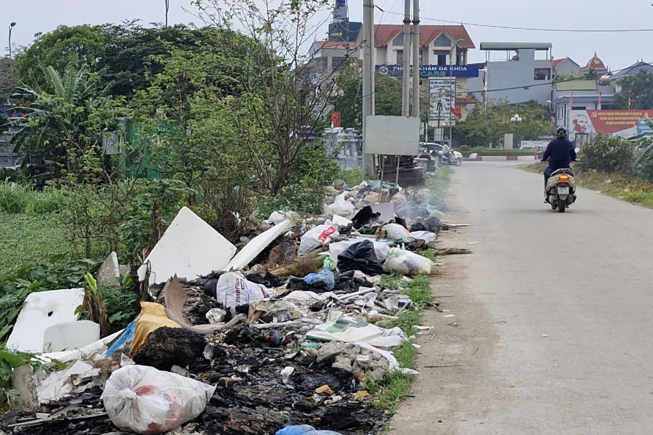Một số khu vực kênh mương ở xã Quốc Oai tồn tại các chân rác tự phát gây ô nhiễm môi trường. Ảnh: Đức Duy