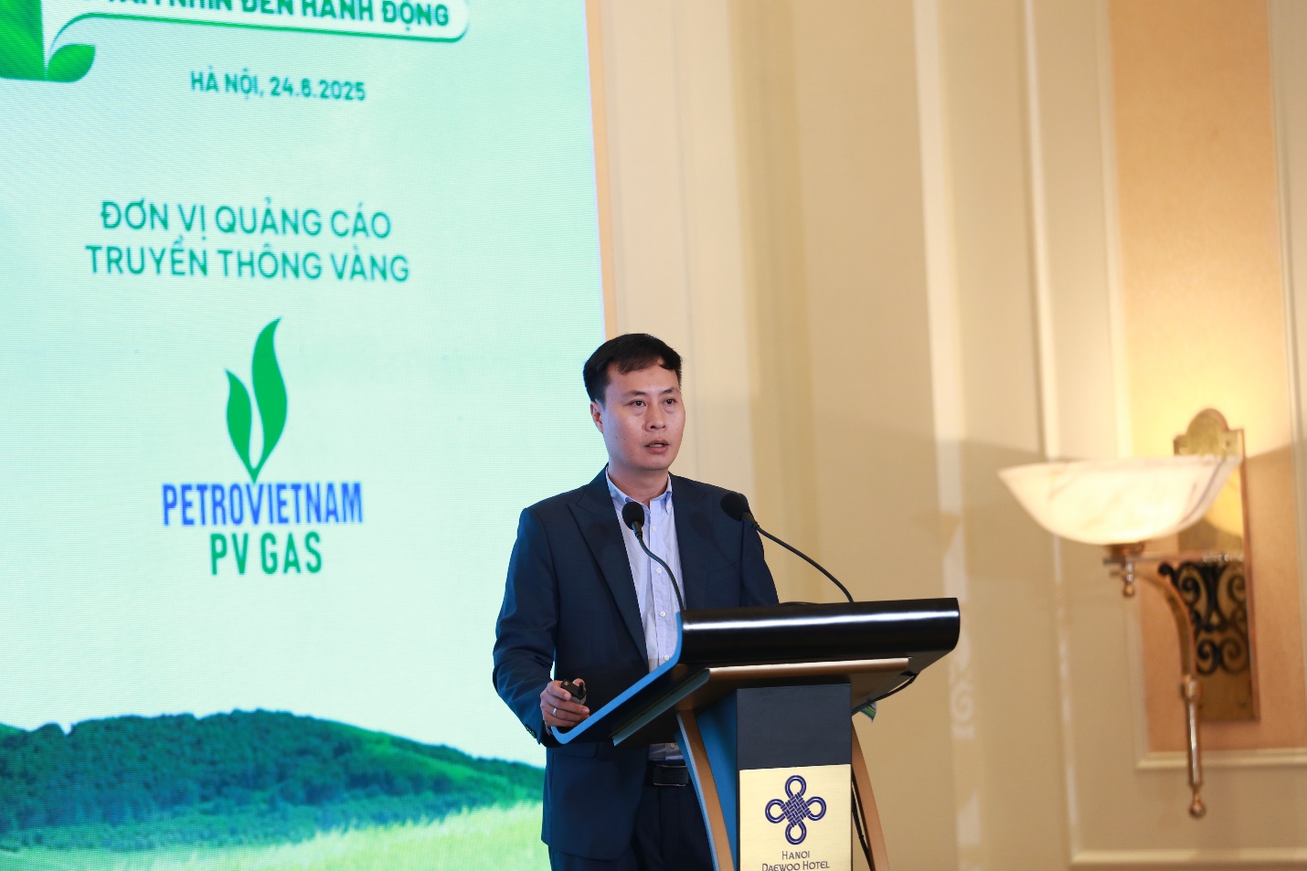 Ông Chu Hải Hà, Phó ban Nghiên cứu Phát triển - Tổng Công ty Khí Việt Nam – CTCP (PV GAS) phát biểu tại Diễn đàn với chủ đề: “Hydro xanh – Một sản phẩm tiềm năng của PV GAS”